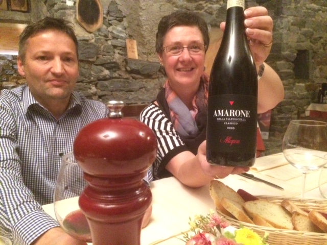 Jahrgängertreffen: Text von Gaby verfasst. Um halb drei Uhr nachmittags trafen wir uns am Bahnhof in Brig zum diesjährigen Jahrgängertreffen. Leider waren wir nur ein kleine Truppe. Edith und Urban haben sich kurzfristig entschuldigt. Am Schluss waren wir noch sechs, die den Zug um 14.44 Uhr nach Domodossola bestiegen. Die Zugfahrt im Restaurant verging viel zu schnell.Fast haben wir es verpasst auszusteigen! Unser Weg führte uns zielstrebig ins Zentrum von Domo. Bei angenehmen Temperaturen genossen wir draussen den Aperitiv und das „Dolce far niente“.An Gesprächsstoff fehlte es uns nicht. Um 17.00 Uhr wurden wir am Bahnhof abgeholt und wir fuhren nach Masera ins Ristorante „Divin Porcello“ Wir wurden in den Keller geführt und erlebten eine Überraschung, alle waren begeistert. Uns präsentierten sich herrliche Räumlichkeiten mit heimeliger Atmosphäre. Und all diese Weine, wir kamen aus dem Staunen nicht heraus. Nach dem Apéro mit diversen italienischen Fleischspezialitäten nahmen wir Platz um unser Überraschungsmenu zu geniessen. Wir wurden nicht enttäuscht. Es gab von allem etwas, Ravioli, Risotto, Hirsch mit Polenta und Rindfleischstreifen mit Kartoffeln. Wir waren satt, zufrieden und freuten uns auf das Dessert, als zu unserem Erstaunen nochmals Fleisch serviert wurde welches wir auf dem heissten Stein selber braten konnten. Oh la la, wir hatten alle genug aber es war so lecker.! Zu diesem Menu gehörte natürlich ein guter Tropfen Wein. Die erlesene Auswahl ist auf den Fotos dokumentiert! Nach neun Uhr fuhr uns das Taxiin aller Eile auf den Bahnhof um den Zug um 21.35 Richtung Brig zu nehmen. Leider war kein Zug da und wir standen erstaunt und fassungslos auf dem Perron. HALLOOO…- was soll das… wir sind in Italien – nicht in der Schweiz und mit dem öffentlichen Verkehr unterwegs! Zum Glück oder etwa nicht….. (?) ging eine Stunde später noch ein Bus nach Iselle wo wir mit dem Autoverlad-Zugnach Brig fuhren. Inzwischen war es weit nach Mitternacht, aber wir waren noch nicht müde genug um nach Hause zu gehen. HALLOOO… wir sind ja noch nicht 50! Somit verbrachten wir unseren Abschluss mit Schlummerdrinks im „Schlagertempel“.Die Musik mit den „alten“ Hits erinnerten an unsere wilden Zeiten - alles hat sich doch nicht verändert. HALLOOO…… es war einfach super! – Allen die dabei waren ein Dankeschön für den tollen Abend. |